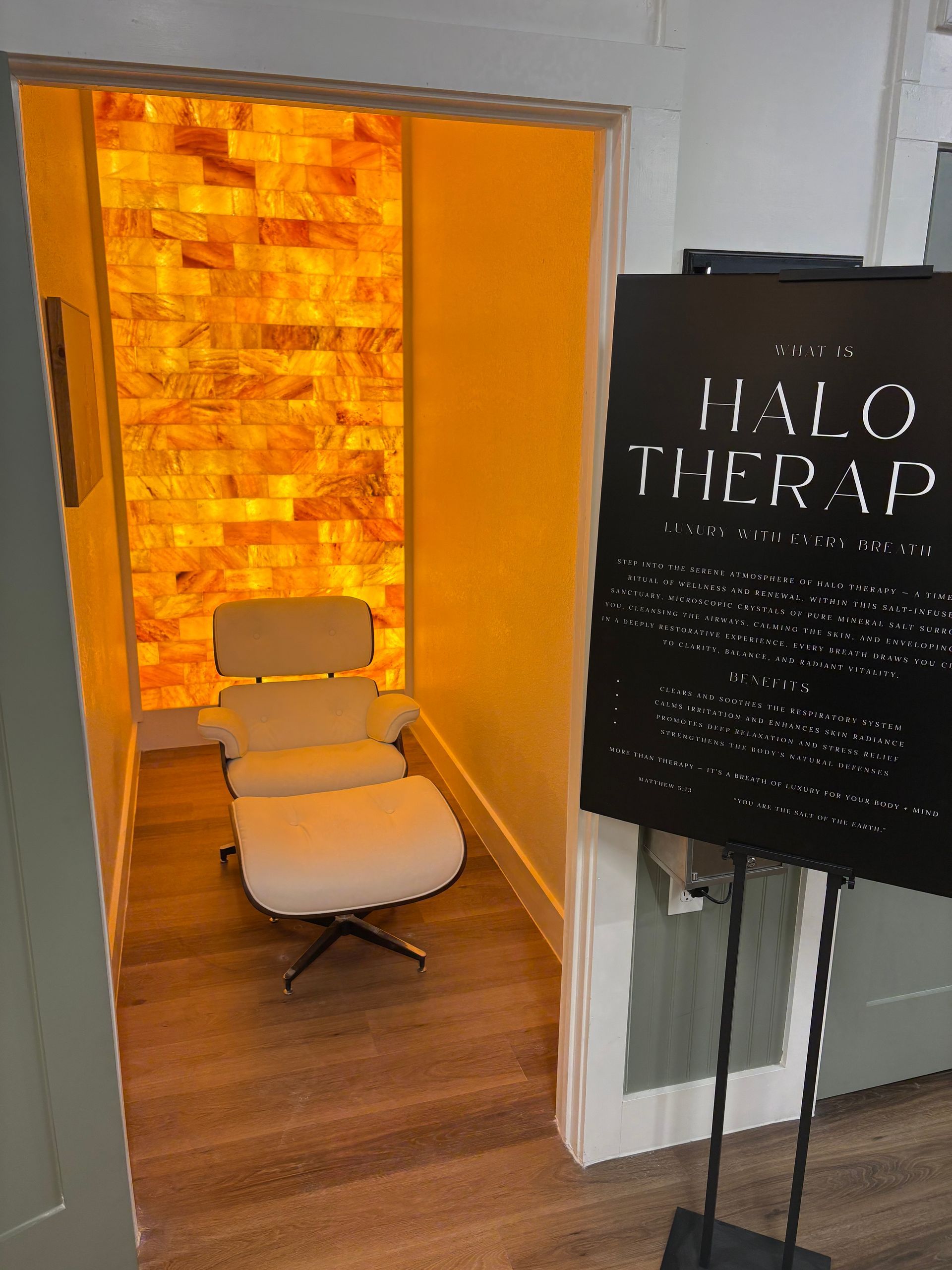 Halo therapy, also known as Salt Therapy, disperses fine salt particles that support calmer breathing and relaxation. This gentle wellness session refreshes the senses, improves comfort, and creates a soothing atmosphere ideal for unwinding and restoring clarity without intensity.